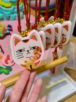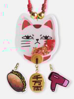 Here to bring you "luck" and maybe protection from aliens or ghosts, your favorite supernatural granny is now pocket-sized. Of course she didn't come empty-handed. Each charm features her must-have items: a yakisoba bun, a blow dryer, and her money coin.